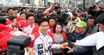 김문수 국민의힘 대선 후보가 16일 신도시 순회 일정 속에서도 전통시장을 빠뜨리지 않고 찾으며 '생활 밀착형' 민생 행보를 이어가고 있다. 첫 유세지를 서울 가락시장으로 택한 데 이어 연일 서민 현장을 누비는 행보가 중도층 확장에 힘을 실을 것이란 평가가 나온다.김 후