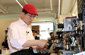 김문수, 청년층 껴안기 행보 … 커피숍 알바 체험하며 "청년의 꿈 응원"