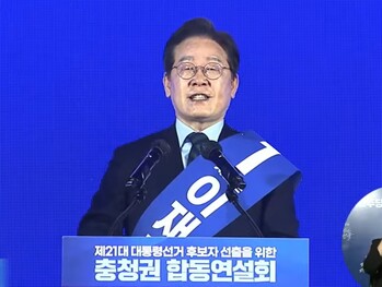 이재명 민주당 대선 경선 후보가 19일 오후 충북 청주체육관에서 열린 더불어민주당 제21대 대선 경선 충청권 순회경선 합동연설회 입장을 준비하고 있다. 더불어민주당은 19일 충청권을 시작으로 20일 영남권, 26일 호남권, 27일 수도권 강원 제주