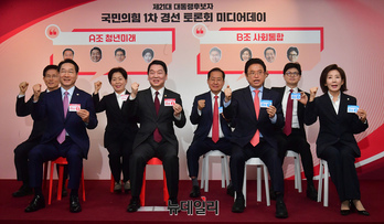 국민의힘이 1차 경선에 진출한 8명의 후보자를 대상으로 토론회 조 추첨을 진행했다.국민의힘은 17일 서울 여의도 중앙당사에서 미디어데이를 열고 경선 후보자 8명을 대상으로 조 추첨을 완료했다.추첨 결과 A조(청년미래)는 김문수·안철수·양향자·유정복 후보, B조(사회통합