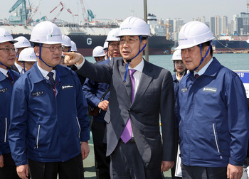 한덕수 대통령 권한대행 국무총리가 16일 이틀 연속 영호남 산업 현장을 방문해 미국 트럼프 행정부 관세 정책에 대한 우리 기업의 대응 상황을 점검했다.한 대행은 이날 HD현대중공업 울산 조선소를 찾아 직원들을 격려했다. 또 우리 해군의 최신 이지스 구축함인 다산정약용함