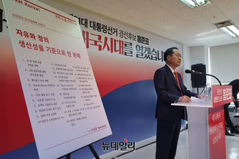 제21대 대통령 선거 출마를 선언한 홍준표 전 대구시장이 '민관경제부흥 5개년 계획' 등 경제 분야 대선 공약을 제시했다.홍 전 시장은 16일 서울 여의도 캠프사무소에서 '선진대국시대 비전발표회'를 열고 경제 부문 정책을 발표했다. 홍 전 시장은 전날 18개의 정치 부