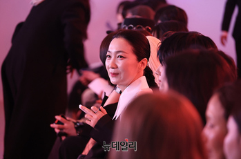 배우 김주령이 25일 오전 서울 중구 동대문디자인플라자에서 열린 패션코드 2026 FW에서 트로아 런웨이를 관람하고 있다. 패션코드는 패션문화 산업 발전을 위해 연 2회 개최되는 패션문화마켓이다. 25일부터 27일까지 사흘간 동대문디자인플라자 쇼룸에서 개최된다