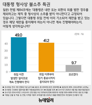 대통령 형사상 불소추 특권 어떻게 보나 … '취임 전 발생 계속 진행' 49.0%