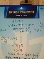 조정식 사무총장, 기협 창립50주년 기념총회에서 당적을 '새누리당'으로 표기