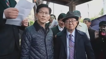 김은구 트루스포럼 대표가 5일 오후 서울 관악구 서울대학교 정문에서 열린 '더불어민주당 해산·시진핑자료실 폐쇄 촉구 집회'에서 성명문을 발표하고 있다.