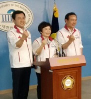 7·30 재보선에서 최대 격전지로 꼽히는 수원에 동반 출마하는 임태희(정), 정미경(을), 김용남(병) 새누리당 후보들이 11일 "최선을 다하고 채점관의 점수를 받겠다"며 출마 소감을 전했다.이들은 이날 오후 여의도 국회 정론관에서 기자회견을 열고 "저희 세 사람은 수