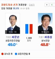 [6.4 지방선거]강원도지사, 최문순 49.04 vs 최흥집 48.77 역전