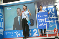 새민련 대구시장 후보로 나섰던 김부겸 후보가 사실상의 낙선 인사를 남겼다.김부겸 후보는 선거에서 38.13%지지율로 최종적으로 40%에 육박할 것으로 보이지만 58%로 앞서고 있는 권영진 새누리당 후보에 20%가까이 표차이가 나고 있는 상태다.대구시민 여러분의 분에 넘