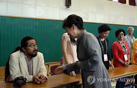 투표 뒤 손 내민 朴 대통령, 노동당 참관인은 ‘거부’
