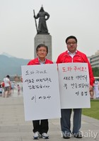 [포토]1인유세 이어가는 새누리당 이에리사-안종범 의원