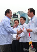 6.4 지방선거 전 마지막 휴일인 31일 오후 새누리당 광역단체장 후보 결의대회가 서울역 광장에서 진행됐다.이날 결의대회에는 새누리당 이완구 원내대표, 서청원 공동선대위원장, 정몽준 서울시장 후보, 이중효 전남지사 후보, 유한식 세종시장 후보, 이정재 광주시장 후보,