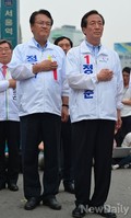 [포토]국기에대한 경례하는 정진석-정몽준 후보