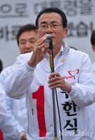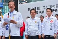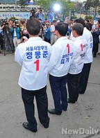 6.4 지방선거 전 마지막 휴일인 31일 오후 새누리당 광역단체장 후보 결의대회가 서울역 광장에서 진행됐다.이날 결의대회에는 새누리당 이완구 원내대표, 서청원 공동선대위원장, 정몽준 서울시장 후보, 이중효 전남지사 후보, 유한식 세종시장 후보, 이정재 광주시장 후보,
