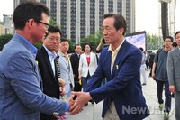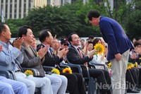 새누리당 정몽준 서울시장 후보가 31일 오후 서울 종로구 광화문 광장에서 문화체육관광부 주최로 열린 [언어문화개선을 위한 100만 선플 자원봉사단 출범식 및 선플음악회]에 참석했다.이날 행사에는 문용린, 이상면 서울시교육감 후보와 새정치당 홍정식 서울시장후보가 참석했다