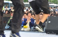 [포토]비보이 공연 관람하는 정몽준 서울시장 후보