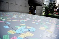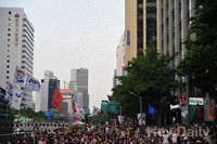 [포토]"청와대로 가자" 전단으로 엉망이 된 청계광장