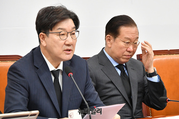 권성동 국민의힘 원내대표가 27일 국회에서 열린 산불재난대응 특별위원회 긴급회의에서 발언을 하고 있다.