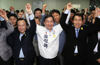 [타도 송영길]에 한 뜻을 모은 유정복과 안상수가 손을 맞잡았다. 새누리당 인천시장 유정복 후보는 18일 인천 부평 선거캠프에서 열린 기자회견에서 안상수 전 인천시장을 공동선거대책위원장으로 위촉했다고 밝혔다. 새누리당 인천시장 경선대결의 경쟁자였던 유정복 후보와 안상수