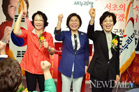 6.4지방선거 구청장 등 기초단체장에 출사표를 내민 새누리당 여성 후보 5인방이 한자리에 모였다.주인공은 조은희 서초구청장 후보, 신연희 강남구청장 후보, 박춘희 송파구청장 후보, 황춘자 용산구청장 후보, 신계용 과천시장 후보.이들은 14일 열린 조은희 후보의 선거사무