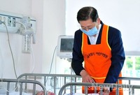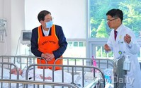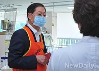 [포토]환아 곁에서 안타까운 표정 짓는 김황식 예비후보