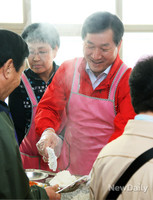 유정복 새누리당 인천시장 예비후보는 15일 부평 부광감리교회 식당에서 무료 급식 봉사활동을 펼쳤다. 부광노인대학에서 운영하는 무료 급식 봉사는 매주 화요일, 노인대학에 참여하는 어르신들을 대상으로 점심을 제공하는 활동이다. 유정복 예비후보는 이날 무료 급식 봉사장을 찾