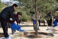 [포토]朴대통령 식목일 기념식수, 정이품송 후계목 심어