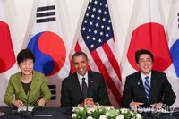 송민순 전 외교통상부 장관은 26일 에 출연해 네덜란드 헤이그에서 열린 한미일 정상회담에서 한국이 중국과 미국 간 연결고리 역할을 해야 한다고 강조했다. 송 전 장관은 전반적으로 박근혜 대통령이 중미일 관계 사이에서 유연하게 대처하고 있다고 평가했다. 한국이 미국과 중