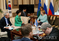 朴대통령 앞에..속죄한 메르켈과 뻔뻔한 아베
