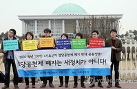 안철수 의원의 핵심 지지기반인 청년층에서 [안철수식 새정치]를 비판하는 목소리가 나왔다.정치·시민사회 분야 등에서 활동 중인 2030 청년 100인은 12일 오전 국회 앞에서 기자회견을 열고, 민주당과 새정치연합이 새정치의 명분으로 내세운[기초선거 정당공천제 폐지]에