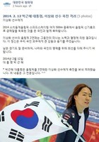박근혜 대통령은 12일 2014 소치 동계올림픽 스피드스케이팅 여자 500m에서 이상화 선수가 금메달을 딴 데 대해 “온 국민과 함께 축하한다”고 말했다. 박 대통령은 이날 경기 직후 이같은 내용을 담은 축전을 보냈다. 2014 소치동계올림픽 스피드스케이팅 여자 50