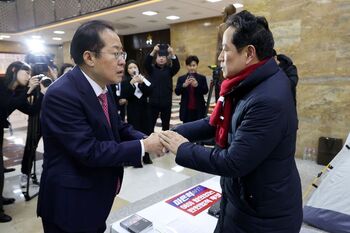 홍준표 대구시장이 최근 정치 행보를 재개한 한동훈 전 국민의힘 대표가 임기 단축 개헌을 주장하자 "나라를 이렇게 어지럽게 해놓고 무슨 쓸데없는 소리인가"라고 직격했다.홍 시장은 5일 오후 마은혁 헌법재판관 후보자 임명에 반대해 국회 본청에서 단식 중인 박수영 국민의힘