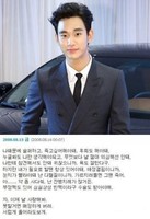 배우 김수현이 과거 남긴 글이 새삼 화제를 모으고 있다.지난 6일 한 온라인 커뮤니티 게시판에는 "김수현의 여자친구가 되기 위한 조건"이라는 제목으로 한 장의 사진이 게재됐다.사진 속에는 김수현이 과거 자신의 미니홈피에 글을 남긴 것을 캡쳐한 것이 담겨있다.김수현은 해