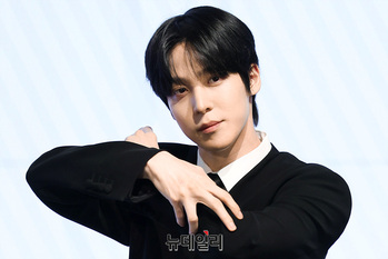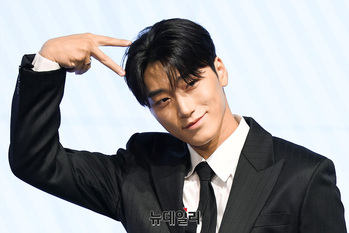 그룹 에이티즈(ATEEZ) 우영이 5일 오후 서울 여의도 페어몬트 앰배서더 서울에서 열린 미니 13집 앨범 'GOLDEN HOUR : Part.4' 기자간담회에서 포즈를 취하고 있다.이번 앨범은 타이틀곡 '아드레날른(Adrenaline)'을 포함해 다섯 곡을 담았다.