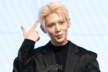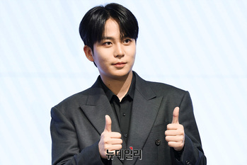 그룹 에이티즈(ATEEZ) 윤호가 5일 오후 서울 여의도 페어몬트 앰배서더 서울에서 열린 미니 13집 앨범 'GOLDEN HOUR : Part.4' 기자간담회에서 포즈를 취하고 있다.이번 앨범은 타이틀곡 '아드레날른(Adrenaline)'을 포함해 다섯 곡을 담았다.
