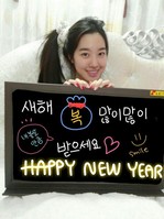 배우 진세연이 새해 인사를 전했다. 진세연은 12월 31일 오전 소속사 얼리버드엔터테인먼트를 통해 “새해 복 많이 많이 받으세요”, “내 볼살만큼”, “스마일”, “해피뉴이어”라는 글귀를 보드판에 작성해 새해 인사를 인증했다. 공개된 사진 속 진세연은 깜찍하게 옆으로