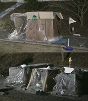 첫 야외취침을 맞은 여섯 멤버들의 종이텐트가 공개돼 눈길을 끈다. 김주혁, 김준호, 차태현, 데프콘, 김종민, 정준영 등 여섯 멤버와 함께하는 KBS 2TV (이하 1박2일) 측은 28일 ‘비포선셋’(Before Sunset) 레이스 후 첫 야외 취침을 맞은 여섯 멤