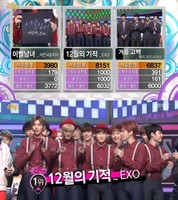 엑소가 에서 2주 연속 1위를 차지했다. 엑소는 21일 방송된 MBC 에서 [12월의 기적]으로 서인국& 지아 [이별남녀], 젤리크리스마스 [겨울고백]을 제치고 1위를 거머쥐었다. 엑소는 SM엔터엔먼트 식구들에게 감사인사를 전하며 “올 한해 엑소 사랑해 주셔서 감사하다
