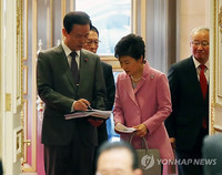 박근혜 대통령이 13일 오전 10시 청와대 영빈관에서 열린 제4차 무역투자진흥회의 입장에 앞서 김장수 청와대 국가안보실장으로부터 보고를 받고 있다. ⓒ 연합뉴스청와대는 북한 장성택 처형 이후 예상되는 급변사태에 대비해 주말내내 비상근무태세를 유지했다.40여년간 2인자