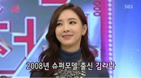슈퍼모델 출신이자 걸그룹 나인뮤지스 출신인 김라나가 '음치'임이 밝혀졌다.15일 방송된 SBS '도전 1000곡'에 출연한 김라나는 미스코리아 임지연과 팀을 이뤄 노래대결에 나섰다.이날 MC 이휘재는 김라나를 "'도전1000곡 9대 MC"라며 소개했고, 이어 "그런데