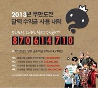 무한도전이 달력 수익금과 수익금 사용 내역을 공개해 화제다. 지난 23일 방송된 MBC '무한도전'은 방송 말미 자막을 통해 2013년 무한도전 달력 수익금과 사용 내역을 공개해 눈길을 끌었다. '2013 무도달력'의 수익금은 8억 7,061만 4,710원으로 2012