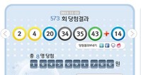 지난 23일 나눔로또 573회 추첨에서 당첨된 1등 번호는 2, 4, 20, 34, 35, 43이었다. 보너스 번호는 14. 1등은 8명으로 각각 16억 4,569만 1,766원을 받는다. 1등 번호 중 5개와 보너스 번호를 맞춘 2등은 50명으로 각각 4,388만 5