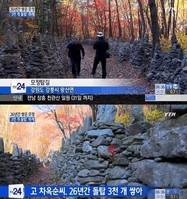 26년간 3천 개의 돌탑을 쌓은 한 어머니의 사연이 화제다. 26일 방송된 YTN 에서는 강원도 강릉시 왕산면 해발 600m 노추산 계곡에 한 어머니가 26년간 쌓은 3천 개의 돌탑을 소개했다. 해발 600여 미터에 달하는 강릉시 노추산 계곡을 가다 보면 양쪽으로 늘어