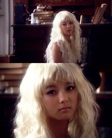 배우 김유정이 금발로 파격 변신했다. 최근 한 온라인 포털사이트에 [김유정 가수데뷔?]라는 글과 함께 사진이 게재돼 네티즌들의 궁금증을 증폭시켰다. 공개된 영상에서 김유정은 순백의 화이트 시스루룩 원피스와 금발 롱 웨이브 헤어로 청순한 아역 배우 이미지를 벗고 성숙한
