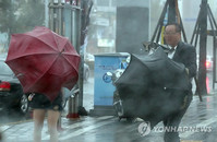 (부산=연합뉴스) 부산지방기상청은 8일 오후 8시40분을 기해 부산지역에 발효 중인 태풍주의보를 태풍경보로 대치했다. 부산지역은 북상하는 태풍 '다나스'의 영향권에 점차 들면서 비와 바람이 거세지고 있다. 기상청은 현재까지 부산지역에 73㎜의 비가 내렸고 바람은 초속