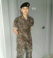 배우 송중기의 군복입은 모습이 공개됐다. 최근 한 온라인 커뮤니티 게시판에는 [군복 입은 송중기]라는 제목으로 한 장의 사진이 올라왔다. 공개된 사진 속 송중기는 부대 내 생활관 앞에서 군복을 입은 채 긴장된 표정으로 카메라를 향해 포즈를 취하고 있다. 군복을 입은 모