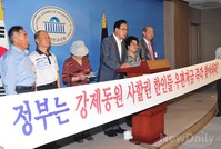 새누리당 의원이 [일제강제동원 평화연구회] 회원들과 함께 12일 오전 서울 여의도 국회 에서 기자회견을 가지고 지난 7일 일본 교토통신에 의해 처음 존재가 알려진 일본 [사할린 한국인 강제징용 노동자]들의 [저금통장]에 대한 반환 보상을 요구 했다.이번에 발견 된 [