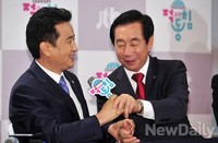 [포토]적과의 동침 화이팅 외치는 새누리당 김성태 의원
