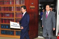 새누리당 , 의원이 6일 오후 서울 여의도 국회의사당 의안과에서 [내란음모] 혐의로 체포된 통합진보당 의원의 제명 징계안을 제출을 위해 들어어오고 있다. 통합진보당 의원 징계안은 새누리당 원내대표 등 새누리당 소속 의원 153명 전원이 서명했다.
