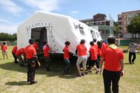 외교부, 한국국제협력단(KOICA), 국립중앙의료원, 국군의무사 등이 해외파견 긴급구호대 합동훈련을 하고 있다.